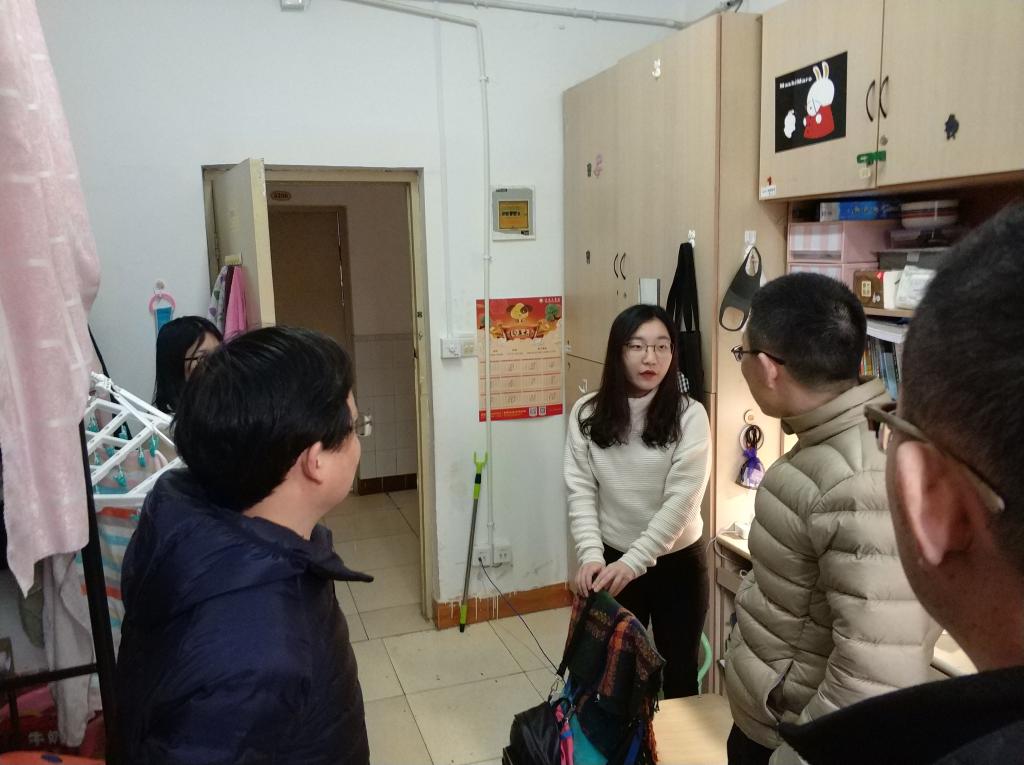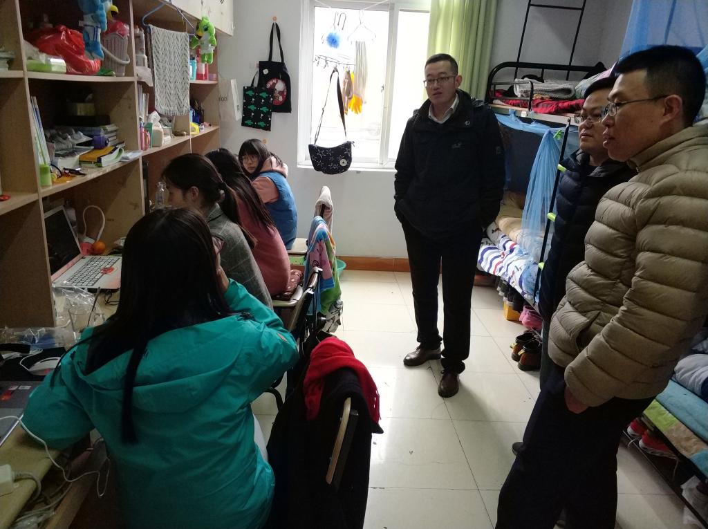 3月1日下午,新学期伊始,我院副院长史林兴、黄增光,党委副书记倪军,辅导员刘丰瑞一起走访学生宿舍了解学生报到情况、学习生活和思想状况,以及宿舍环境和宿舍安全情况,同时看望转专业同学,向大家送上新年问候和美好祝愿。