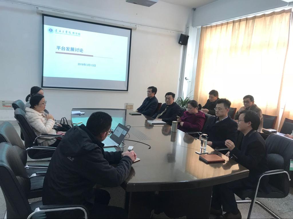 会上首先讨论理学院现有的海洋光学摇杆平台、光伏平台以及光热平台三大物理平台的建设进度,由各平台的负责人汇报了2018年截止目前平台工作及平台落实情况,以及根据建设江苏海洋大学理学院科研工作要求,如何开展今后的科研平台建设工作。在听取各系平台负责人汇报后,史林兴院长详细阐述科研平台建设的重大意义,指出科研平台建设是理学院创新体系的重要组成部分,是开展科学研究、集聚和培养创新人才、开展学术交流活动的重要基地,是提升学校核心竞争力与学科内涵建设的关键。他从平台组织结构搭建、科研方向设置、人才队伍培养、学术氛围营造、科研工作开展、科研成果展示、近期发展规划等方面作了具体分析和指导。