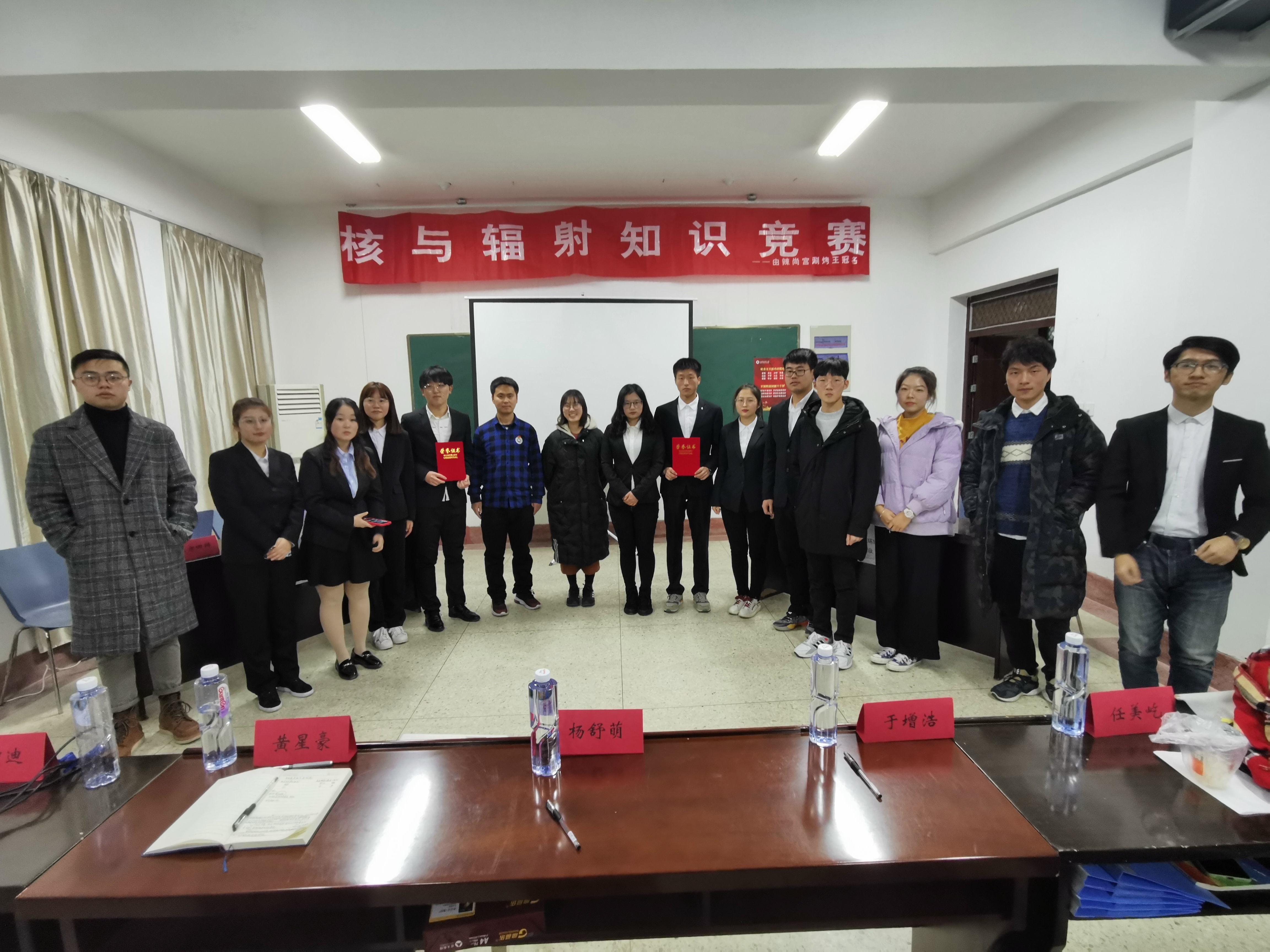 12月2日19时,由连云港市生态环境局主办,江苏海洋大学理学院和连云港市绿色希望公益服务中心承办的连云港市第三届核与辐射能源知识竞赛在江苏海洋大学苍梧校区定海楼512举行,出席此次竞赛的评委有杨舒萌、黄星豪、于增浩、段智迪、任美屹、孙宇轩、邹若雨。