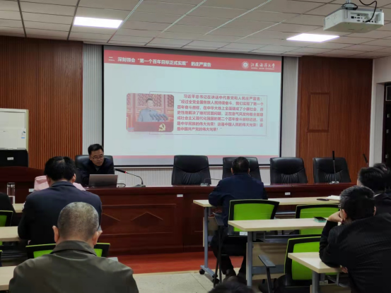 为推进党史学习教育持续走深走实,10月20日下午,理学院邀请校宣传部张兵副部长在定海楼N512会议室,做党史学习教育专题党讲座,主题为学习习近平总书记在庆祝中国共产党成立100周年大会上的重要讲话精神解读——《从党的历史中汲取智慧和力量》,全院教职工参加学习,党委书记赵季春主持。