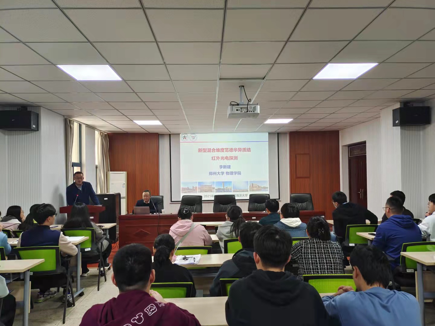 10月27日,应理学院邀请,郑州大学物理学院李新建教授在定海楼512会议室作了题为“二维半导体/半金属室温红外光电探测研究”的报告。理学院部分教师、研究生及光信、新能源专业部分学生参加了报告会。报告会由理学院副院长黄增光主持。