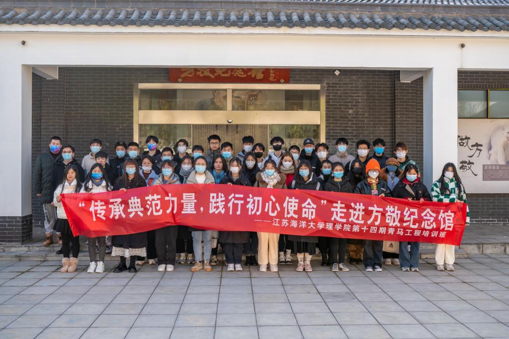 为践行初心使命,缅怀革命先烈,弘扬道德模范精神,强化社会主义核心价值观教育,2021年12月18日上午,江苏海洋大学理学院第十四届青马班学员先后赴连云港市赣榆区宋庄镇、黑林镇“全国道德模范方敬故居纪念馆”与“刘少奇旧居”进行党性教育。