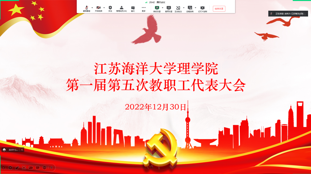 12月30日15:00,理学院在线上召开第一届第五次教职工代表大会。理学院党政领导、教代会代表共计46人参加大会,理学院党委书记张振松主持会议。