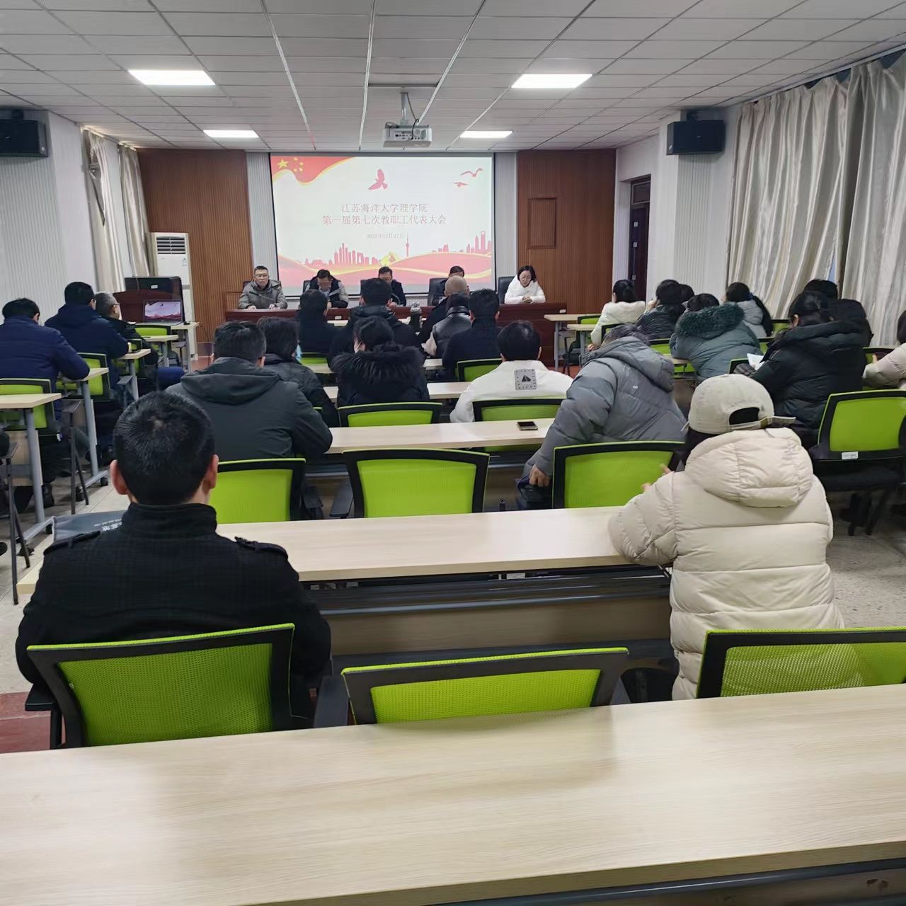 12月27日下午,理学院第一届第七次教职工代表大会在定海楼512会议室召开,理学院党政领导及43名教代会代表参加大会,理学院党委书记张振松主持会议。