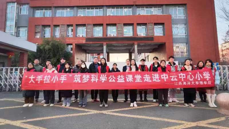 1月4日新年伊始,由江苏海洋大学理学院、连云港市太平洋石英慈善基金会联合举办的,以“大手拉小手”为主题的筑梦科学公益课堂在连云港市中云中心小学顺利举行。