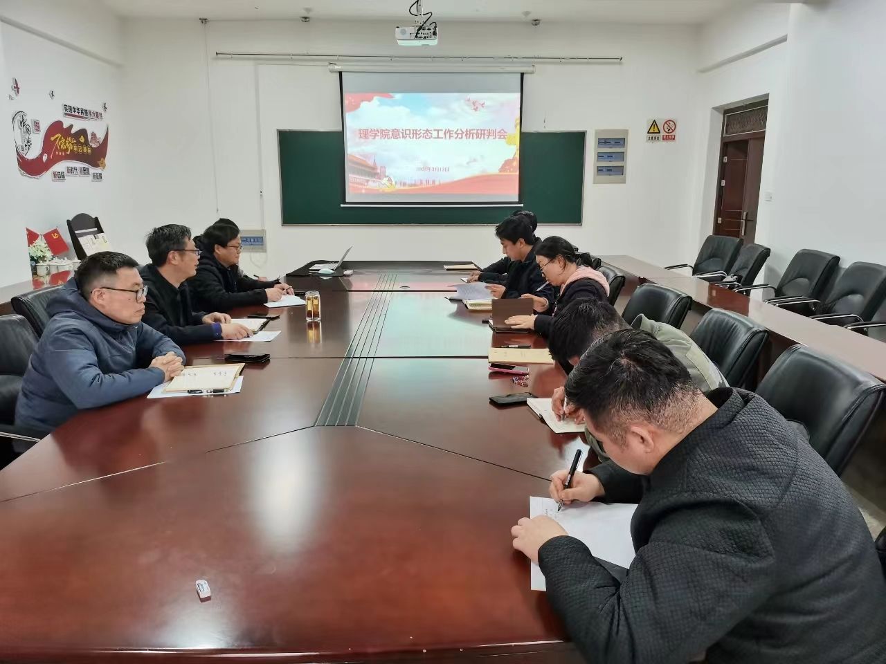 会上,各支部书记、团委书记等等逐一汇报了开学以来教师、学生意识形态工作开展情况,对存在的风险隐患进行了分析,并提出了下一步工作措施。