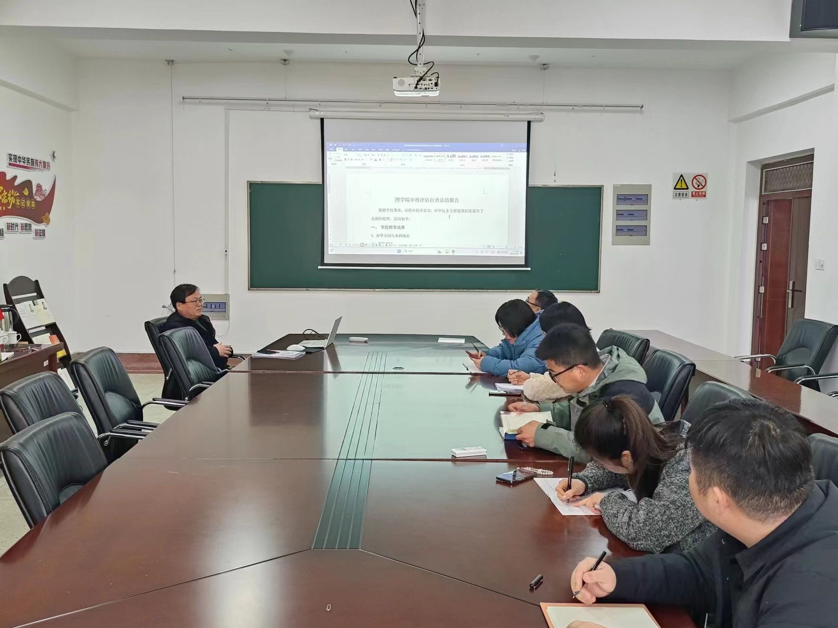 为高质量开展本科教育教学审核评估学院自评报告修订完善工作,3月26日,在定海楼516会议室召开学院自评报告撰写小组工作会议。院长史林兴主持会议,党政办公室、教学科研办公室、学生工作办公室参加会议。