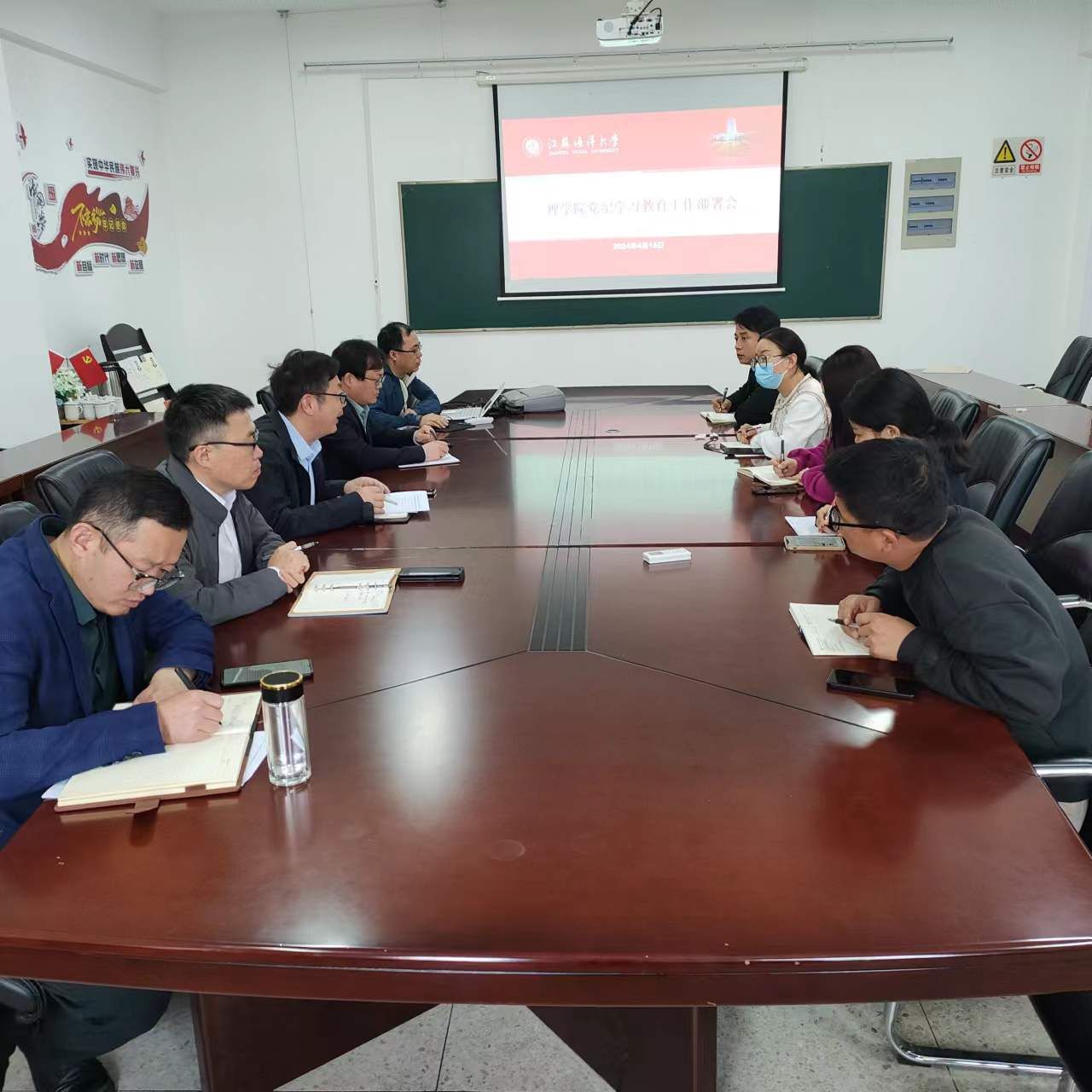 4月18日,理学院召开党纪学习教育工作部署会,党委书记张振松主持会议,学院党委委员、各支部书记参加会议。