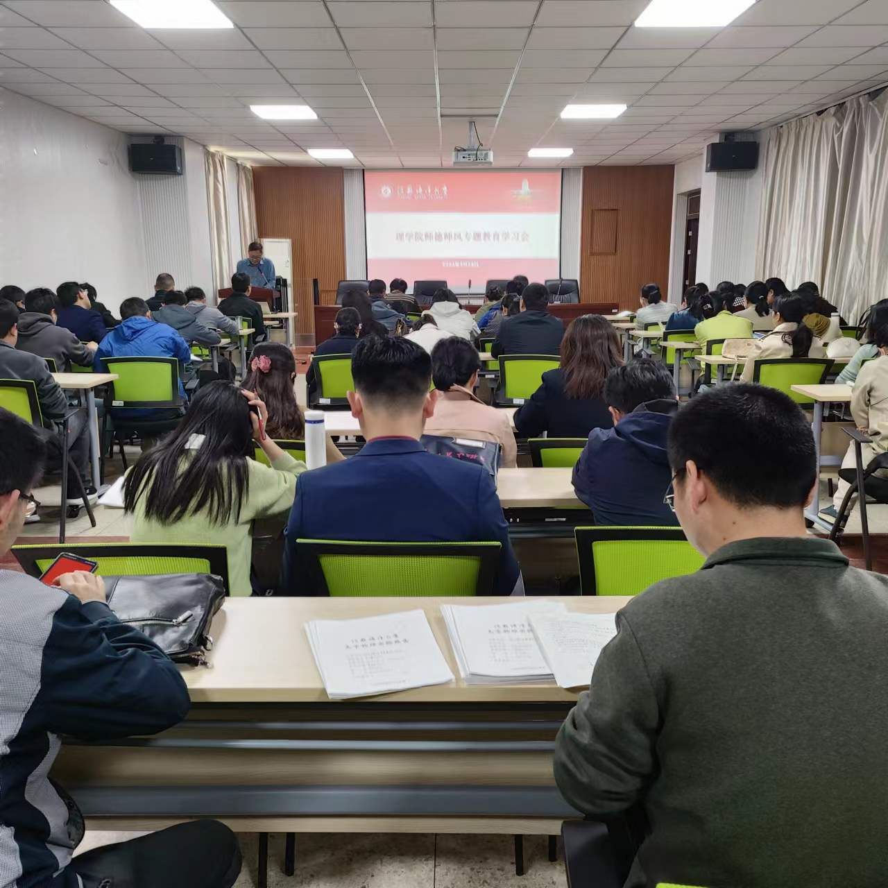 4月24日下午,学院召开师德师风建设专题工作会议,全体教职工参加学习会,院党委书记张振松同志主持会议。
