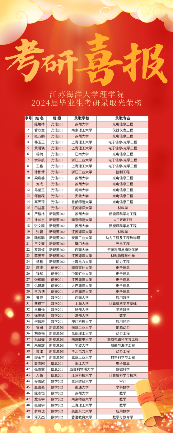 祝愿成功上岸的理学院学子们,前程似锦,研途可期。祝愿还在奋斗道路上的学子们乘风破浪,一战成“硕”,再创辉煌!期待明年佳音传来!