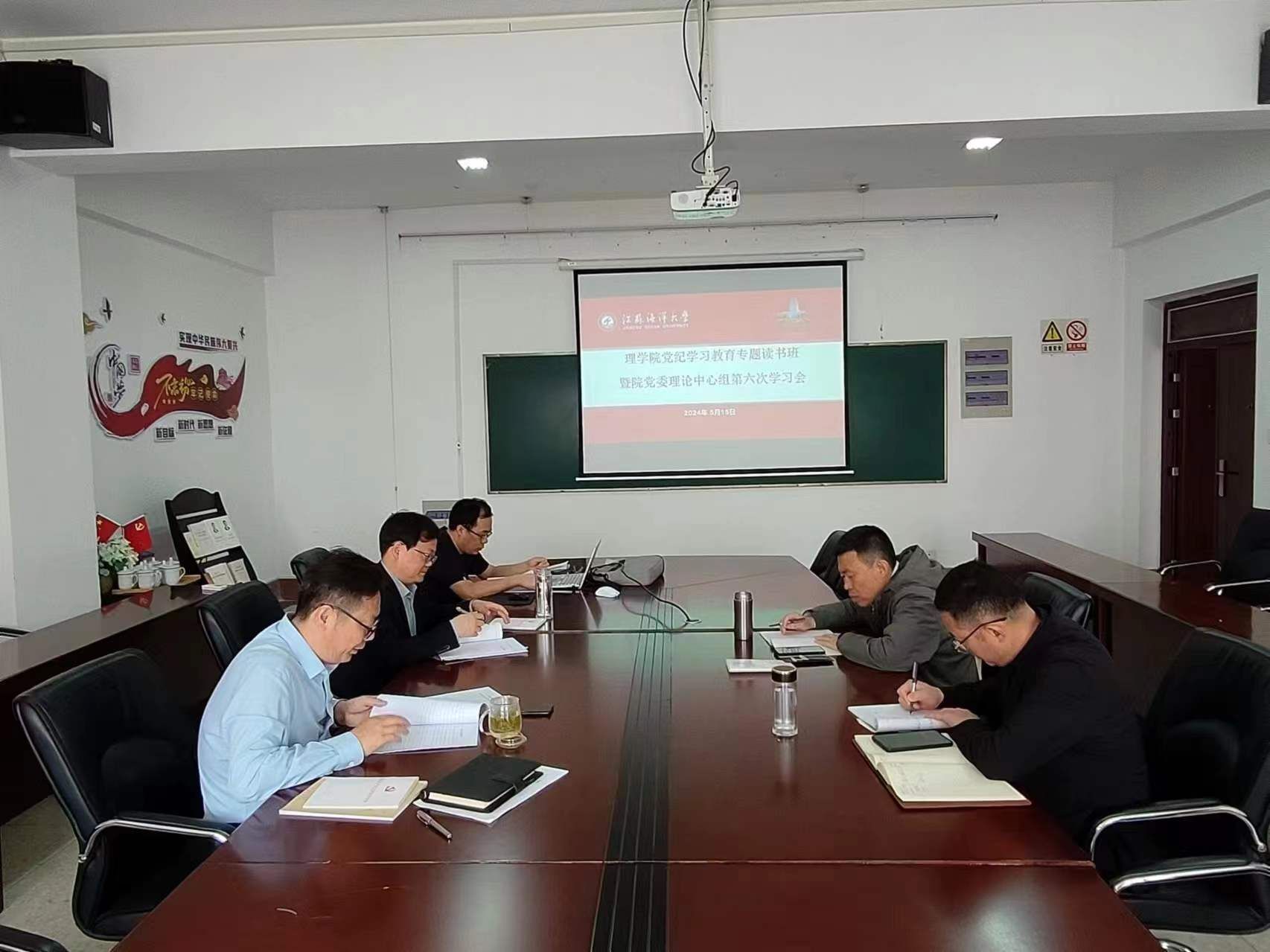 5月15日,理学院党纪学习教育专题读书班暨院党委理论中心组第六次学习会举行,党委书记张振松主持学习会,学院党委委员参加学习。