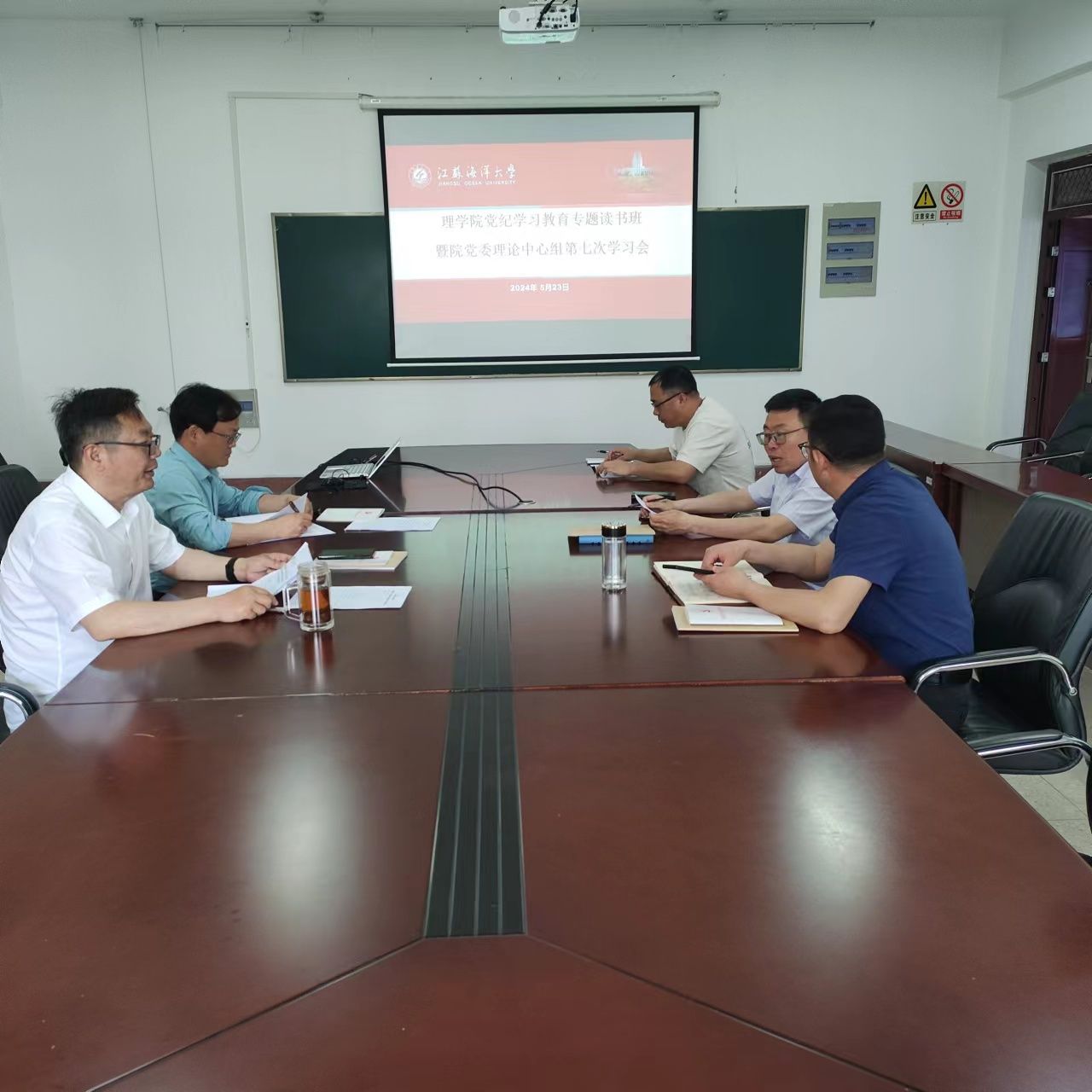 5月23日,理学院党纪学习教育专题读书班暨院党委理论中心组第七次学习会举行,党委书记张振松主持学习会,学院党委委员参加学习。