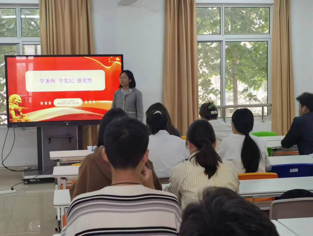 为了加强党员的党纪教育,提高党员的纪律意识和规矩意识,我院学生第一、第二支部于5月11日在一站式社区开展了党纪学习教育专题党课。此次党课由学生第一、第二支部书记尚凌宇、陈达主讲,各支部学生党员参加了学习。