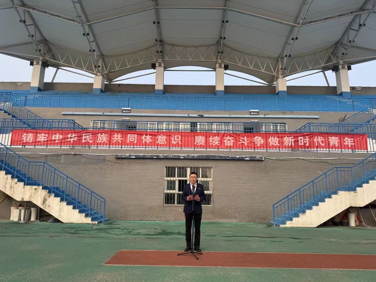 升旗仪式由理学院党委副书记倪军主持,他希望广大青年可以和杨佩同学一道,做铸牢中华民族共体意识的践行者、宣传者。在实现中华民族伟大复兴的道路上挺膺担当、建功立业。