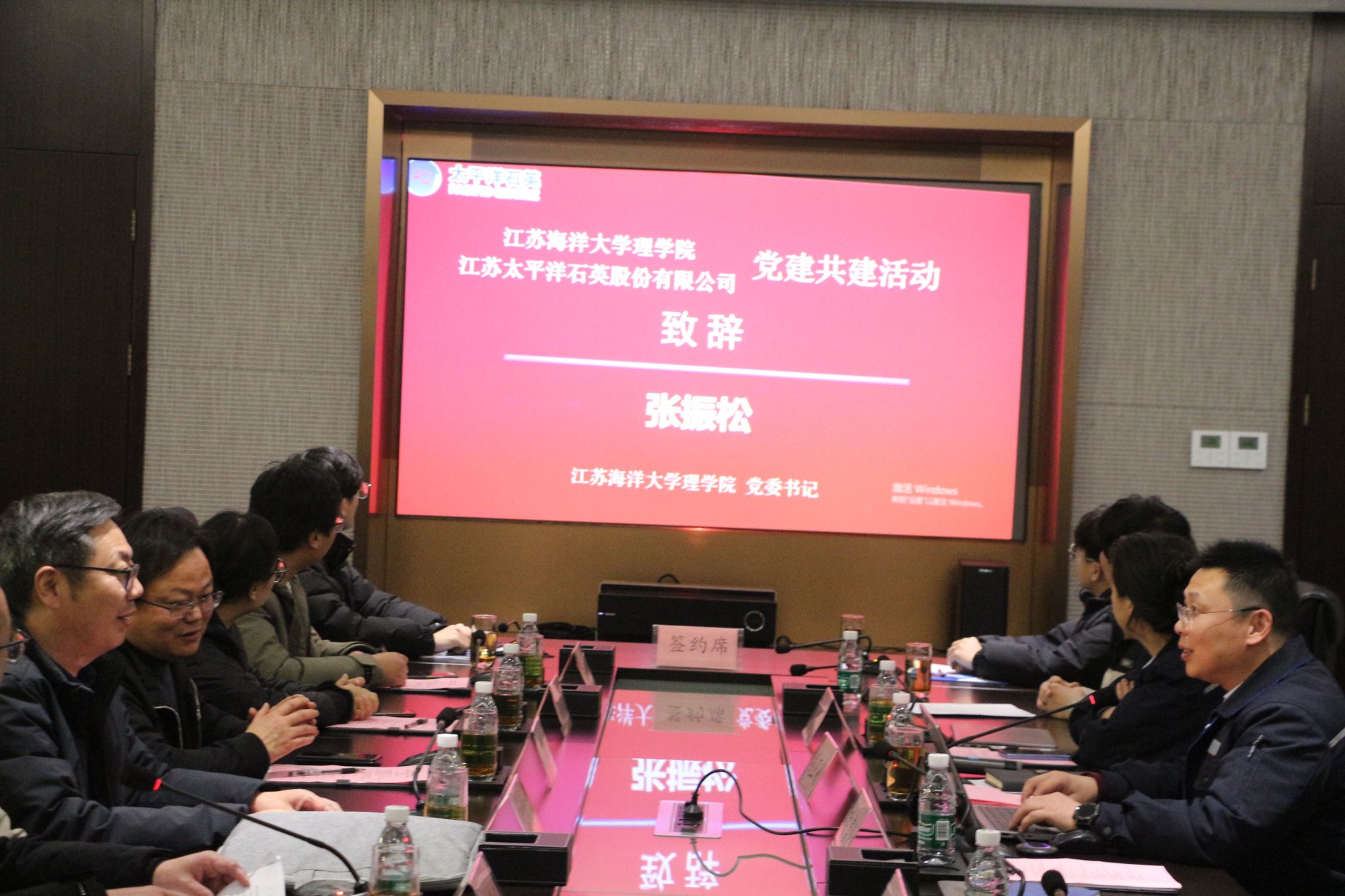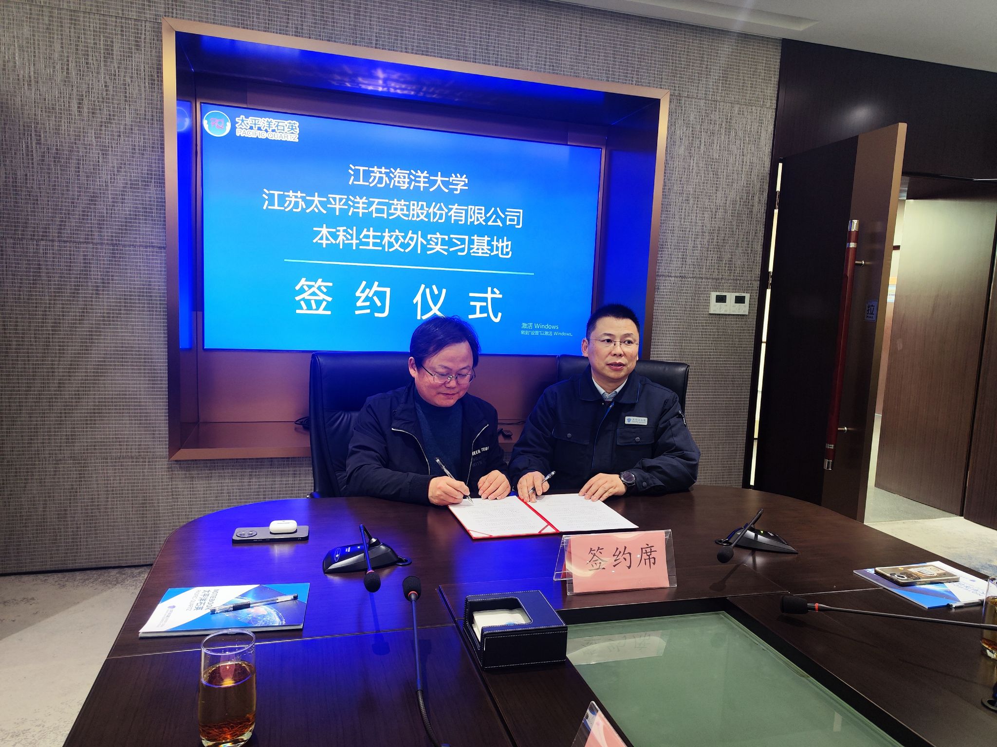 为深入贯彻党的二十大精神,积极落实国家关于深化产教融合、促进教育链与产业链有机衔接的政策要求。2024年12月18日下午,产业链党建联盟引领—太平洋石英光电科技产业学院开展产学研系列活动。江苏海洋大学理学院党委和江苏太平洋石英股份有限公司党支部举行了党建共建签约仪式,同时举办了“光电前沿—行业面对面”产学研系列活动。东海“晶工科创”党建联盟理事会成员、江苏海洋大学理学院党委班子成员、太平洋石英股份有限公司党支部班子成员、太平洋石英光电科技产业学院理事会及管理机构成员、产业学院相关师生代表共同参加了本次活动。