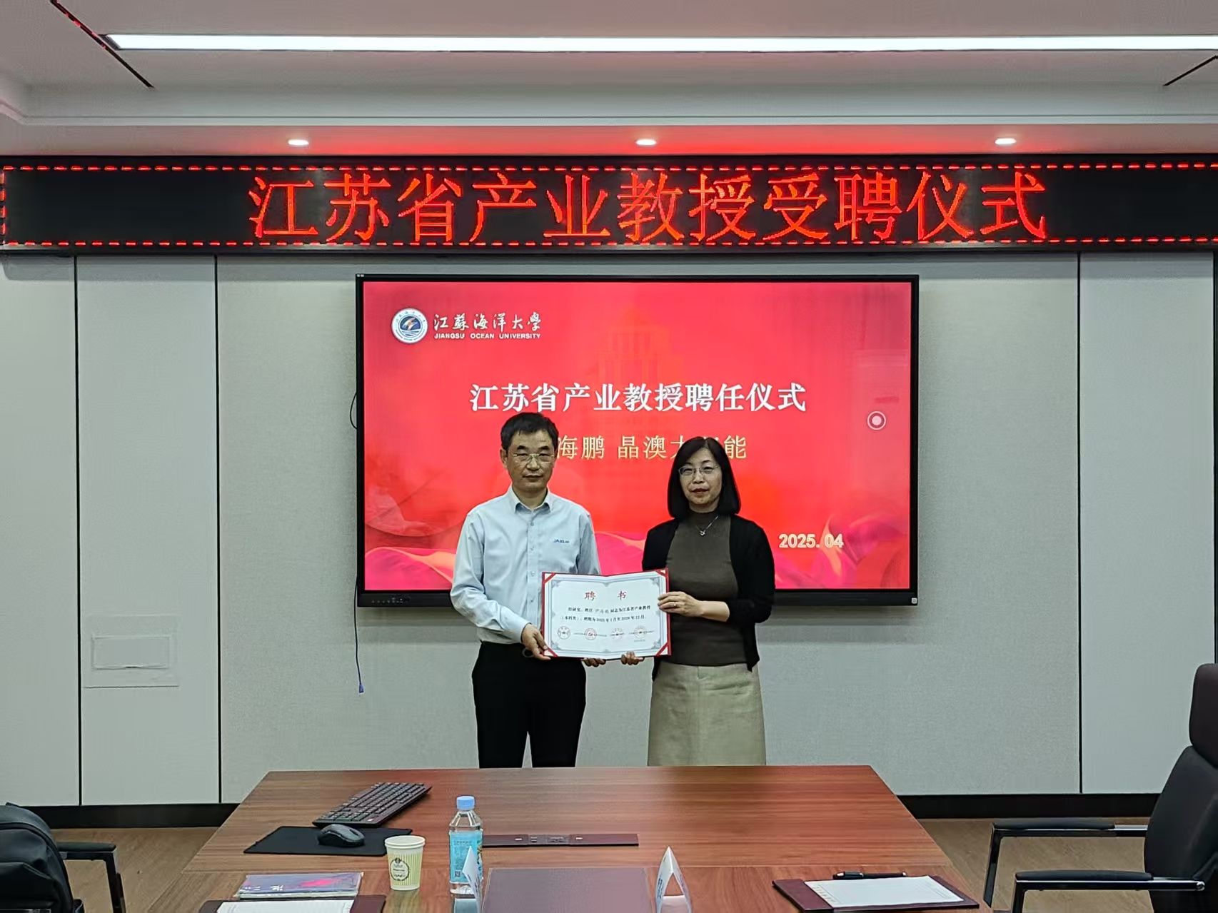 江苏省产业教授聘任仪式由史林兴主持,教务处处长安俊丽为尹海鹏颁发了江苏省产业教授聘书。到此“清洁能源产业学院”已有在聘江苏省产业教授3名,产业学院在产教融合协同育人,高水平企业师资力量等方面更进了一步。作为深化校企合作的“关键纽带”,晶澳太阳能科技有限公司连续四年为新能源科学与工程专业开展《晶硅太阳电池产业化进展》产业教授进课堂活动,此次聘任既是对其产教融合实践成果的充分肯定,也为校企协同育人注入了强劲行业动能。