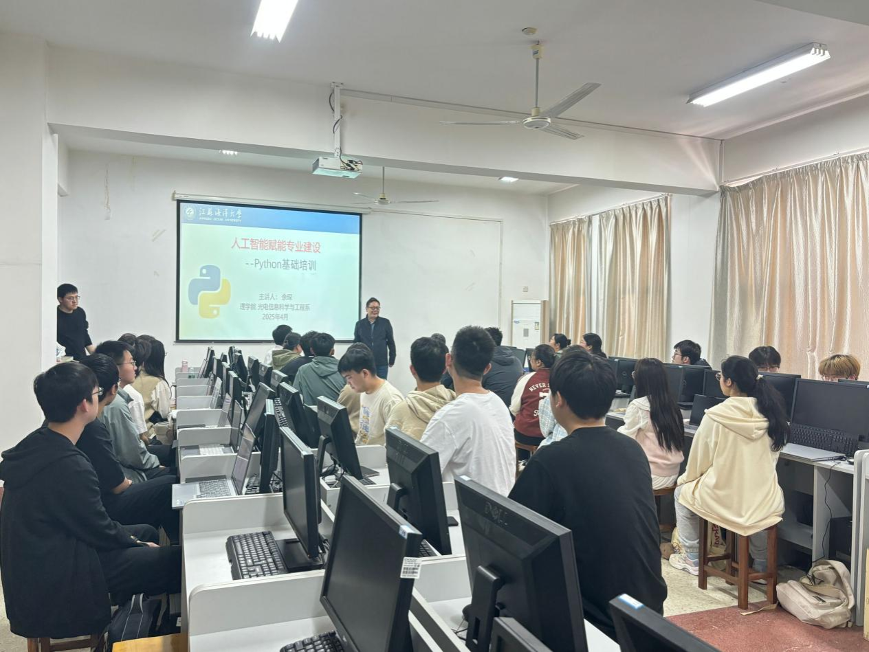 为深入贯彻《教育强国建设规划纲要(2024 - 2035 年)》,积极响应学校“人工智能赋能专业建设”的战略部署,江苏海洋大学理学院光电信息科学与工程系于 4 月 21 日举办了一场别开生面的“人工智能 + Python”讲座。本次讲座由青年教师余琛老师和资深教授薛清老师联合主讲,吸引了众多光电信息科学与工程专业的师生参与。