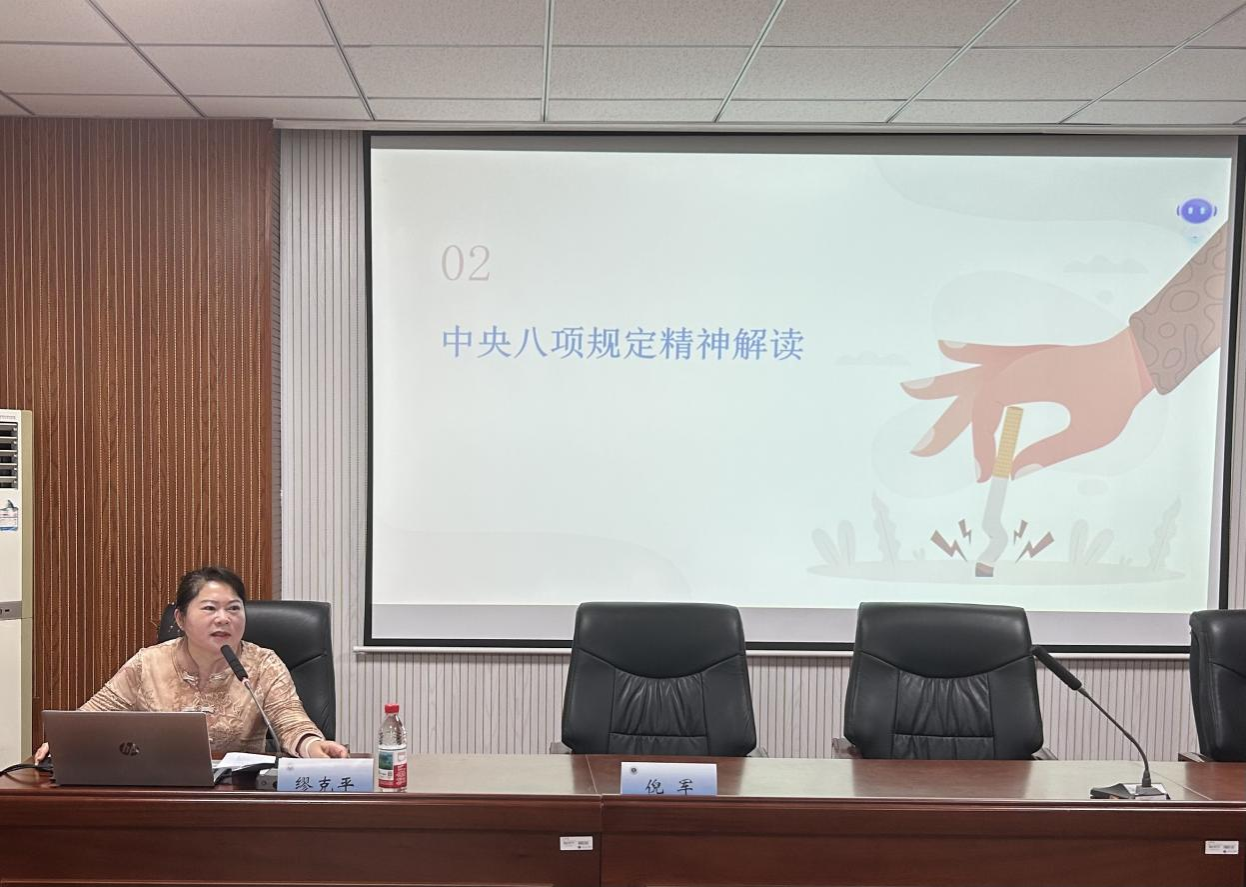 在专题党课环节,缪克平围绕“深化落实中央八项规定精神 加强廉洁自律 提高党性修养”主题进行授课。她结合近年来高校系统及社会上的典型廉政案例,深入剖析了违纪违法的思想根源与严重后果,同时对党内廉政建设相关政策法规进行了解读,从理论高度引导党员深刻理解廉政建设的意义,教育引导全体党员以案为鉴,进一步强化纪律和意识廉洁自律观念,切实改进工作和治学作风,以实际行动维护党的形象。