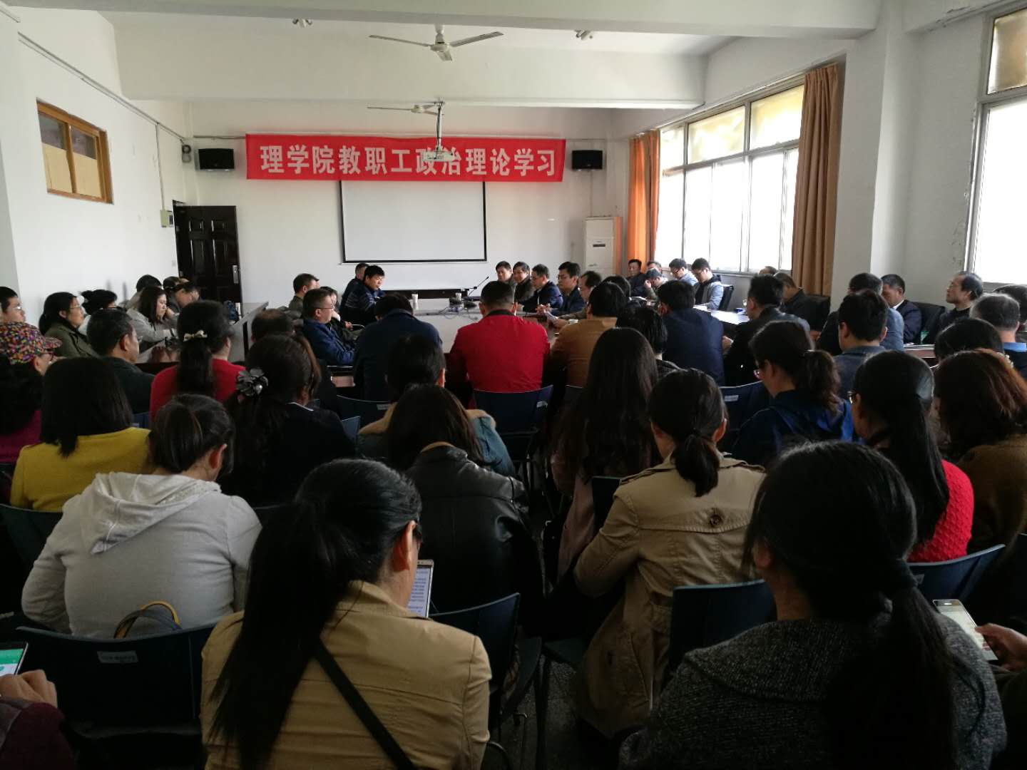 2018年4月18日下午,理学院召开全院教职工大会,副校长陈先宏、组织部副部长汪守建参加会议,会议由学院院长李纪明主持。