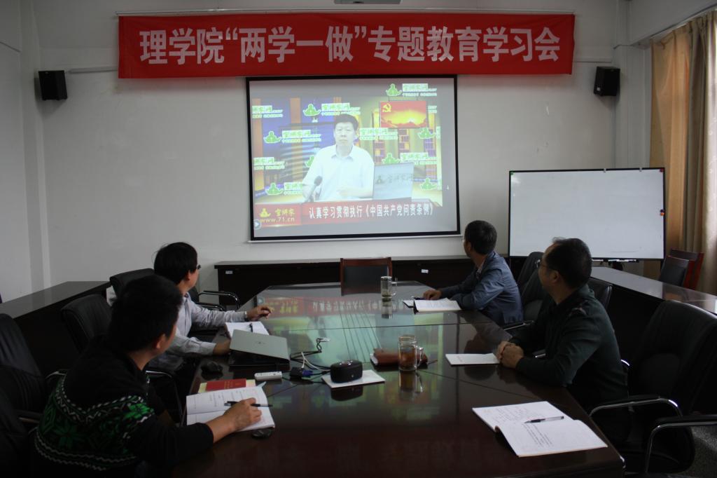 9月28日下午,理学院党委中心组召开“两学一做”学习教育辅导会,认真观看了由中央党校研究生院巡视员刘春同志作的《认真学习贯彻执行<中国共产党问责条例>》报告视频。