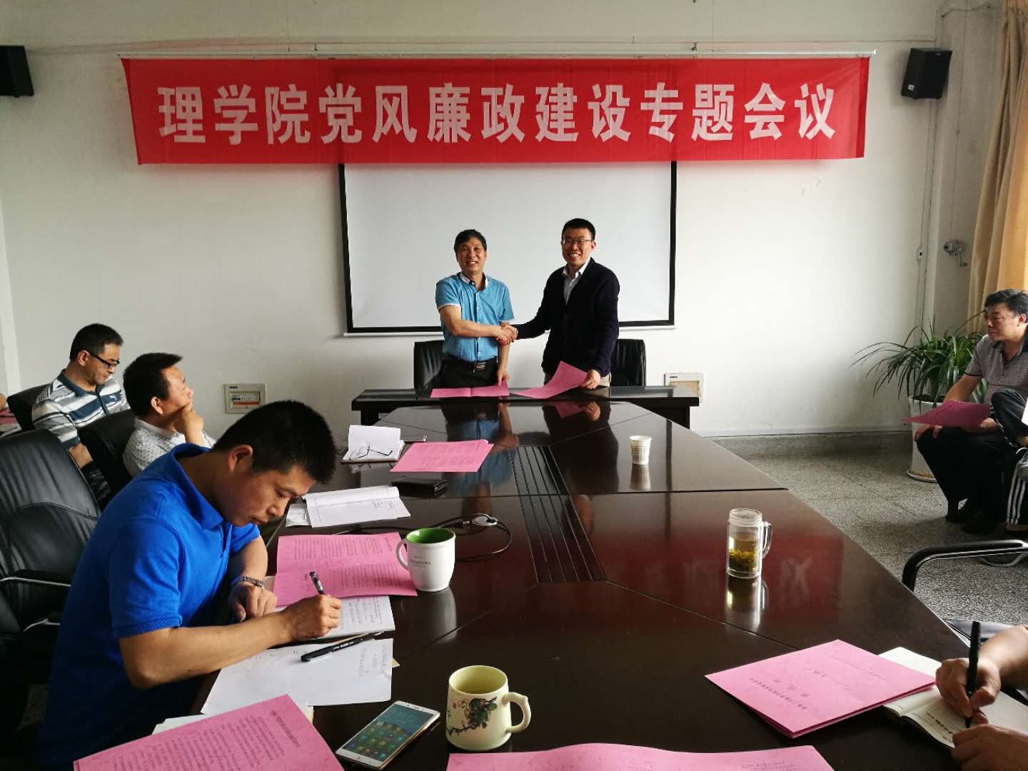 会上,学院领导与分管部门代表签订了2018年党风廉政建设责任状。