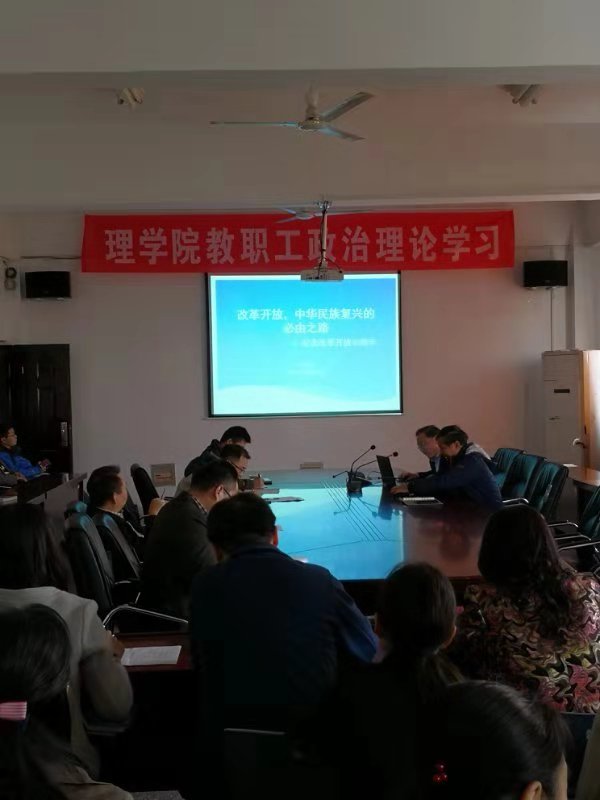 为庆祝改革开放40周年,10月24日下午,理学院邀请校理论宣讲团成员宣昌勇教授作题为“改革开放,中华民族复兴的必由之路”报告,报告会由学院党委书记赵季春主持,学院全体教职工参加会议。