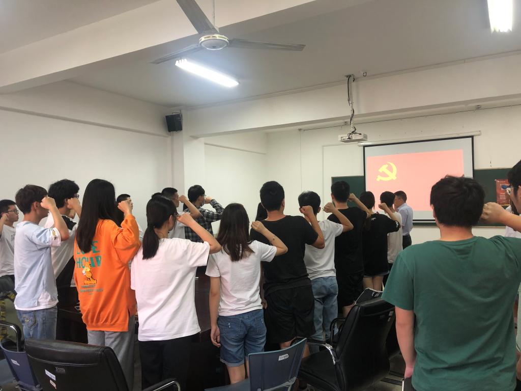6月30日下午17:30,我支部召开会议。活动伊始,全体党员一起观看有关中国共产党成立历程的纪录片,了解我党在历史中的血与泪,明白共产党的精神是在枪与炮的洗礼中磨砺出来的,深刻体悟到现在美好生活的来之不易。之后,两位党员分享了她们疫情期间身为志愿者的感受,通过她们的分享,让大家明白身边总是有一群人在默默付出,负重前行,他们的精神值得所有人学习。最后在倪军副书记的带领下,全体党员一起重温入党誓词,在庄严的宣读过程中,每一位党员的表情无不透露着坚定的决心。