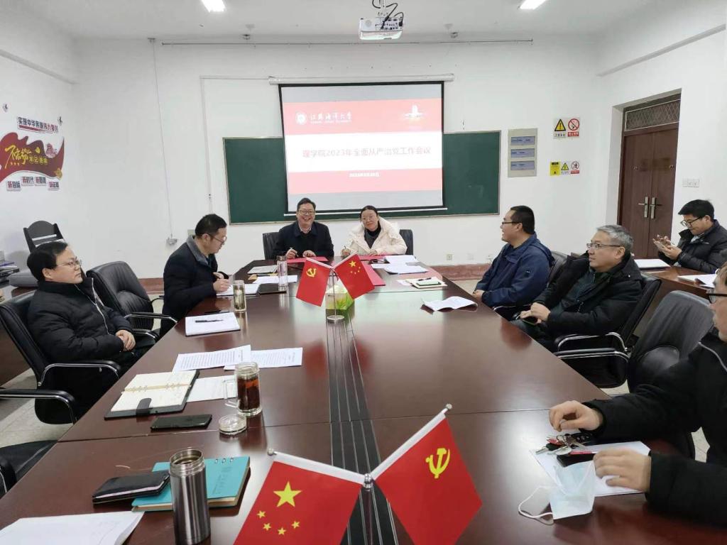 2月22日,理学院党委召开全面从严治党专题会议,党委领导班子成员、各系主任、支部书记、科室负责人等参加会议,党委书记张振松主持会议。