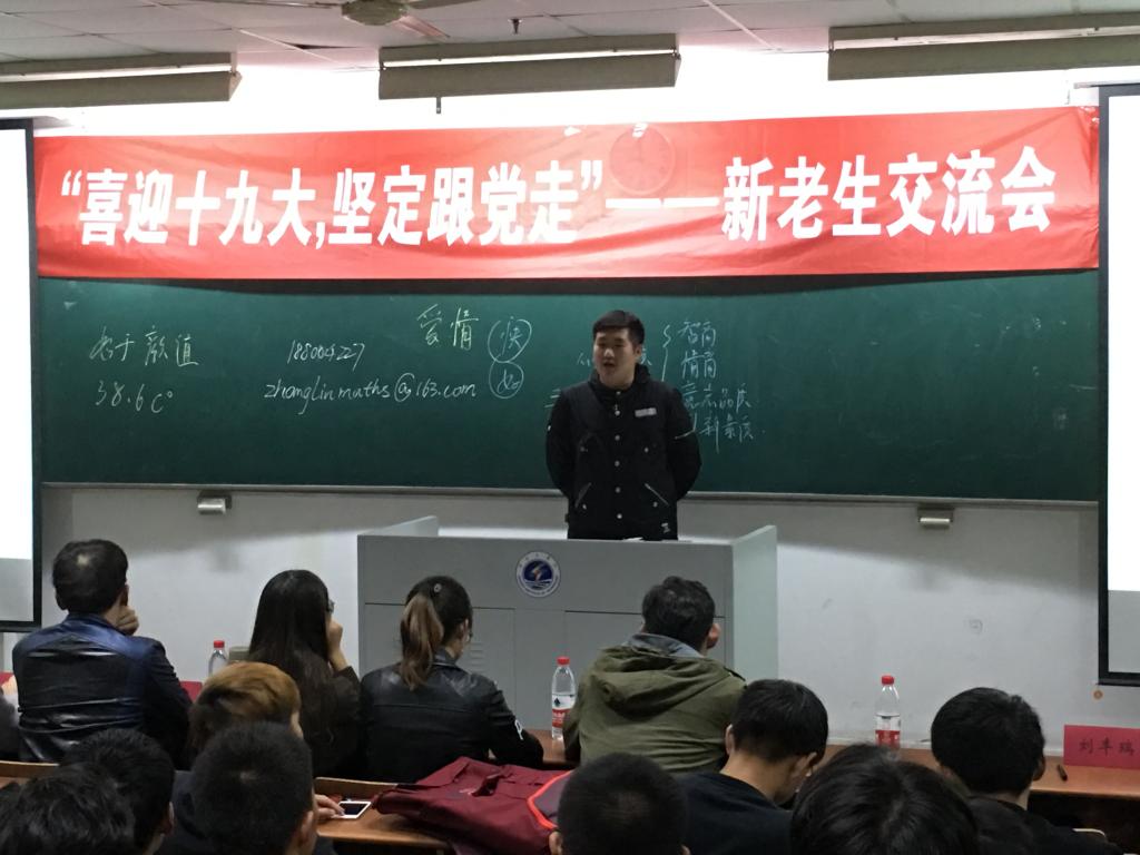 10月20日晚7点,理学院2017级新生入学教育系列讲座——新老生交流会于通灌校区TZ205隆重举行。本次大会由学习部朱江贵、周燕婷主持。老生代表张林、姚文龙、熊燕、陈鹏、蔡格菁、殷悦担任此次交流会的主讲嘉宾,辅导员刘丰瑞、吴若熙出席本次大会。