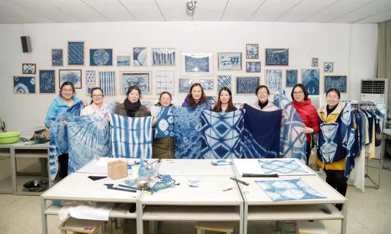 3月6日下午理学院分工会组织女教工在艺术楼304开展了“手工植物染”活动。邀请我校艺术系王栋老师带领理学院的女教工们学习体验非遗技艺-植物蓝染。
