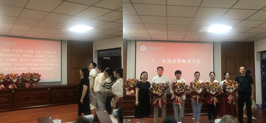 副院长黄增光宣读新教师名单,新教师走向台前,在副院长孙靖带领下,新教师进行了庄严的宣誓。