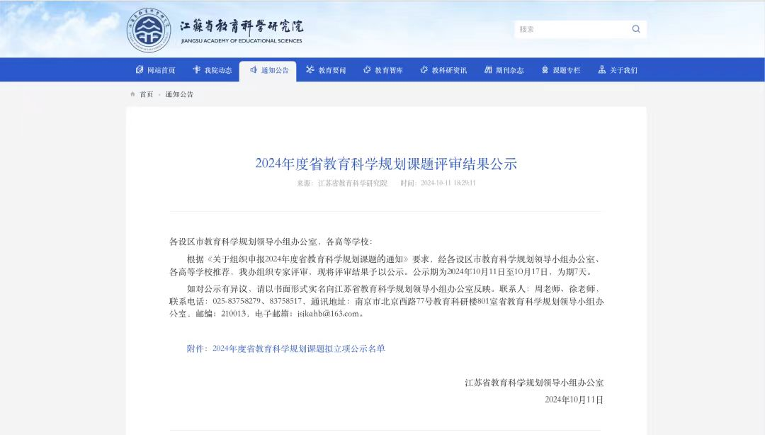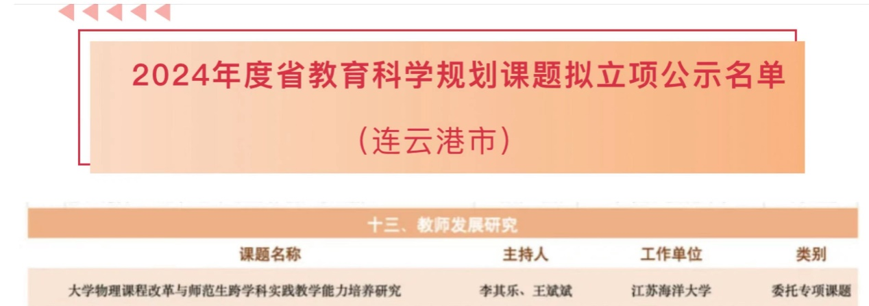 近日,江苏省教育科学研究院发布了2024年度省教育科学规划课题评审结果公示,我院李其乐博士申报的《大学物理课程改革与师范生跨学科实践教学能力培养研究》课题成功入选。