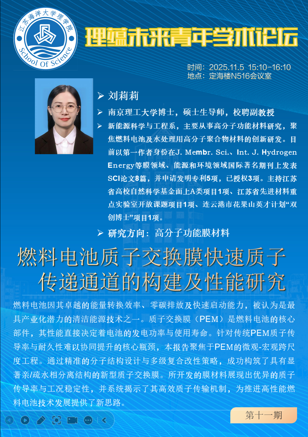 理蕴未来青年学术论坛第十一期-《燃料电池质子交换膜快速质子传递通道的构建及性能研究》刘莉莉