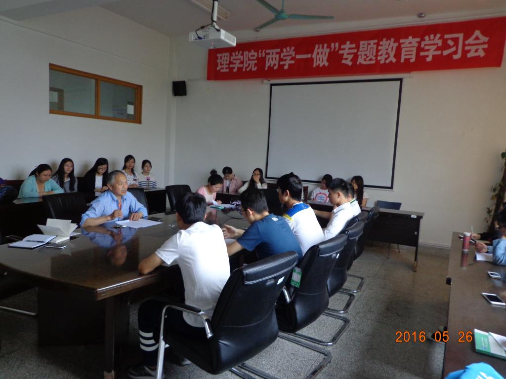 5月26日下午,理学院开展学生党员 “两学一做”学习教育大会。学院党委副书记、学生党支部书记及全体学生党员参加此次会议。
