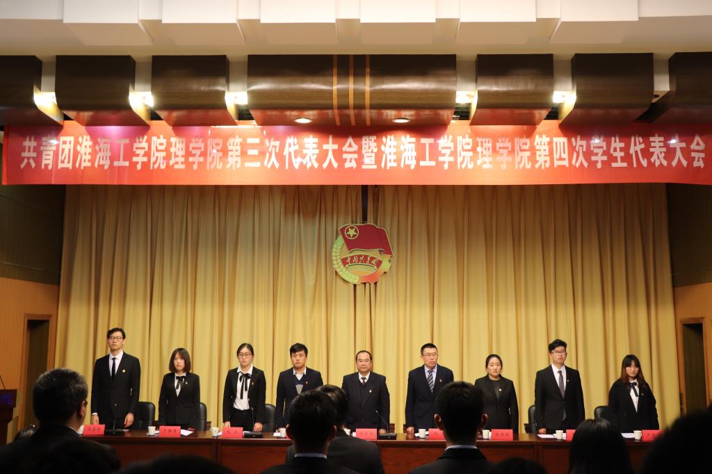12月1日13:00,共青团淮海工学院理学院第三次代表大会暨淮海工学院理学院第四次学生代表大会在文博楼报告厅隆重召开。出席此次大会的领导有共青团淮海工学院委员会书记朱国军,理学院党委书记王恒明,理学院党委副书记,副院长倪军、计算机工程学院团委副书记杜捷,化学工程学院团委副书记马昌,理学院教师代表丁瑞强,理学院辅导员徐建婷、刘丰瑞。学院各班级、组织共121名团员代表出席了本次会议,会议由理学院团委负责人吴若熙主持。