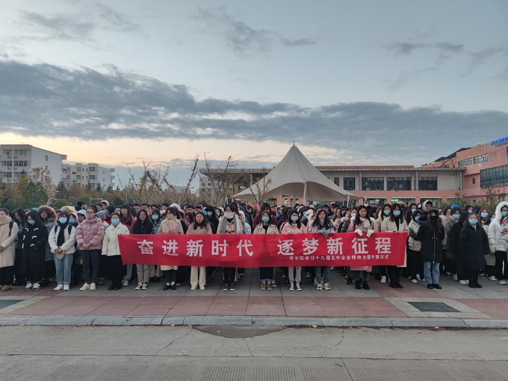 2020年11月23日清晨,理学院在苍梧校区四食堂北广场举行“奋进新时代,逐梦新征程”学习十九届五中全会精神主题升旗仪式。学院党政领导、全体辅导员以及2017、2018、2019级全体学生参加仪式。升旗仪式由院党委副书记倪军主持。