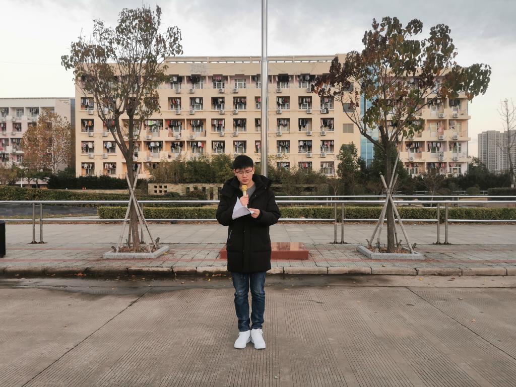 升旗结束后,中共党员、光信171班长唐婷同学做了学习十九届五中全会精神主题演讲。回顾了“十三五”期间我国取得的举世瞩目的成就,号召同学们认真学习贯彻党的十九届五中全会精神,砥砺前行、开拓创新,为新时代中国特色社会主义航船继续乘风破浪积蓄力量。来自光信161的毕业生、理学院2020级新生研究生代表孙香港同学就加强学风建设做了主题发言,结合自己和身边同学的亲身经历,勉励大家要认真学好专业课,考过四六级,积极参加创新实践项目,并和大家分享了考研的经验,要在复习中找到策略,要以毅力和恒心坚持到最后,结果不会辜负你的努力。
