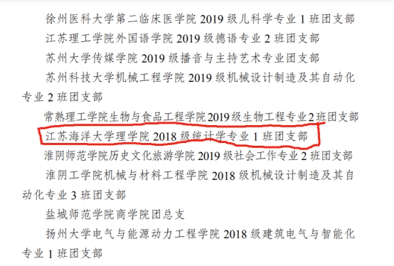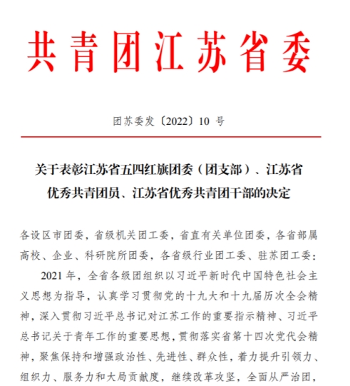 “五四”青年节前夕,共青团江苏省委发布的《关于表彰江苏省五四红旗团委(团支部)、江苏省优秀共青团员、江苏省优秀共青团干部的决定》,我校理学院统计181团支部获评江苏省“五四红旗团支部”称号。