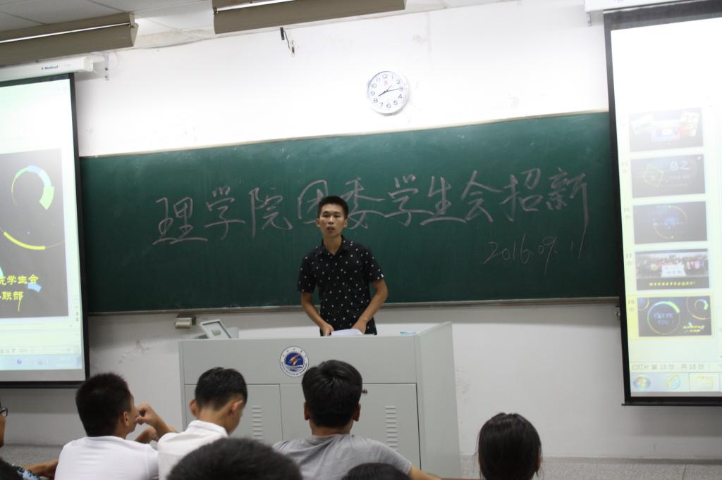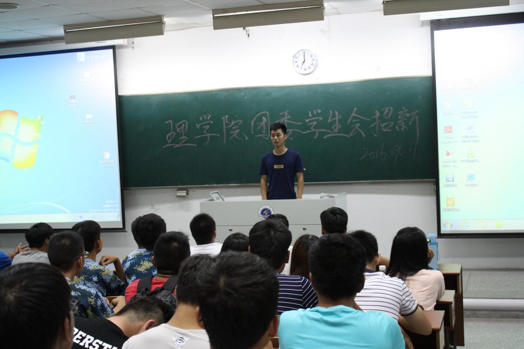 为进一步完善学生会工作制度,更好地服务于学生,做到让同学满意,老师放心,9月11日晚7点,理学院团委学生会于通灌校区TZ410召开了招新大会,为新生提供了一个锻炼自我,服务同学的平台。