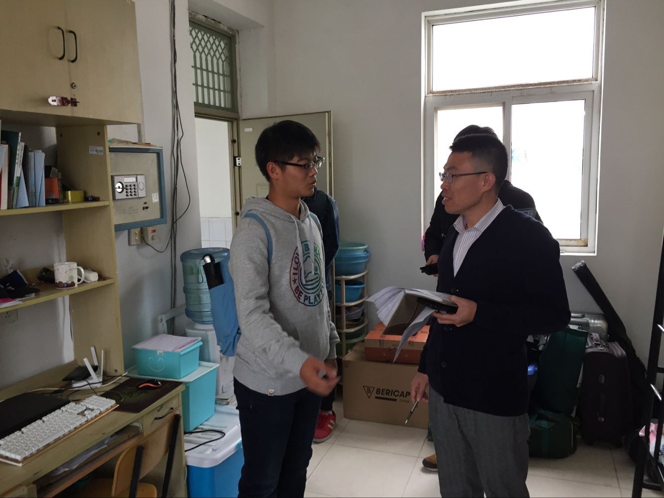 为进一步强化学生宿舍安全意识与环境卫生意识,创建整洁文明的学习和生活环境,同时,也为教育学生养成一个良好的卫生和生活习惯打下坚实的基础,10月17日,淮海工学院理学院党委副书记倪军,辅导员吴若熙、刘丰瑞一同对我院苍梧校区和通灌校区的宿舍卫生状况、安全防范意识进行了检查。
