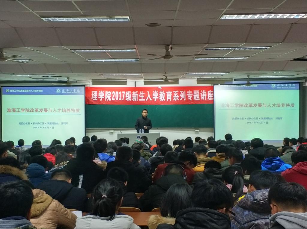 12月7日晚七点,理学院于通灌校区TZ202举行淮海工学院改革发展与人才培养特质新生入学教育。本次新生入学教育由理学院党委副书记倪军主持,党委办公室、校长办公室、发展规划处副主任郑利军担任此次讲座的主讲人,理学院辅导员刘丰瑞及2017级学生参加了此次讲座。