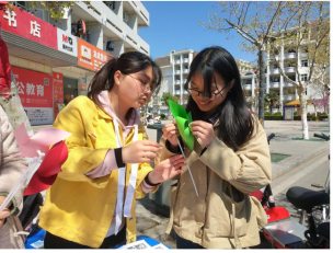 活动伊始,部门内成员准备好彩色卡纸、进行横幅的悬挂、宣传单的发放。随后,校内同学接踵而至,怀着好奇的心情前来参与到本次好玩又新奇的活动中,工作人员人员教授同学们折风车,还告诉同学们可以在风车上写下自己的姓名,班级,留下自己对江海大的祝福语,现场也提供了马克笔,同学们将自己的“祝福”写于横幅上,表达了自己对江海大的感情。同时,现场也安排工作人员为参加活动的同学扫码加群,后期扫pu。最后,所有的工作人员合影留念。