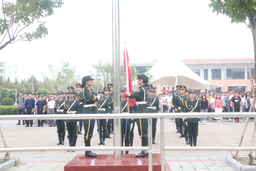 仪式在威严的旋律中拉开帷幕,在全体师生的注目礼下,英姿飒爽的国旗护卫队队员们护送鲜艳的五星红旗进场。伴随着庄严的国歌,五星红旗冉冉升起,迎着朝阳飘扬,深深震撼在场的每一个人。理学院高锟、夏德钱分别代表学生发言,分享了学习过程中的感悟,号召同学们热爱祖国,奋发学习。理学院副书记倪军在讲话中指出作为新时代的大学生,我们将用奋斗共筑中国梦。大学生的本业是学习,希望同学们愿学、勤学、善学,优良学风从我做起,不懈奋斗,更加努力,为“中国梦”的实现做出自己最大的贡献。