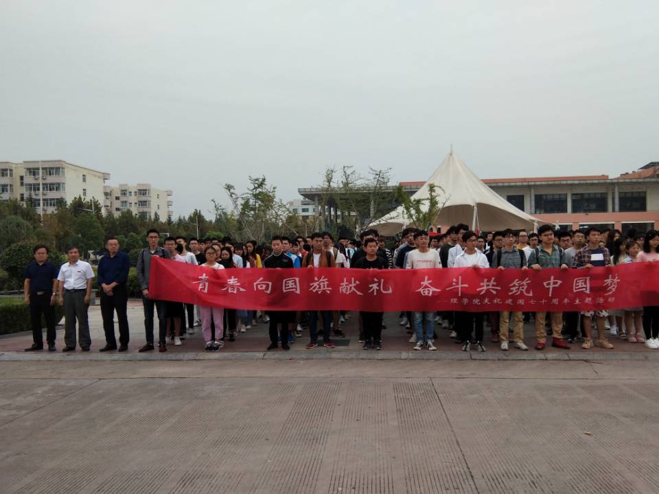 9月16日清晨,理学院在苍梧校区举行“青春向国旗敬礼,奋斗共筑中国梦”爱国教育主题升旗仪式。理学院党委书记赵季春,副院长史林兴、黄增光,党委副书记倪军,全体辅导员及苍梧校区全体学生参加了升旗仪式。