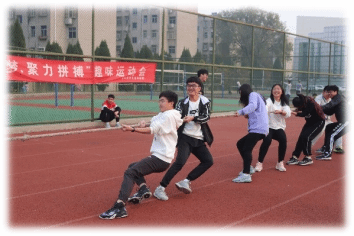 11月9日下午2:00,理学院学生会权益部主办的以“笃行逐梦,聚力拼搏”为主题的趣味运动会在通灌操场顺利开展。