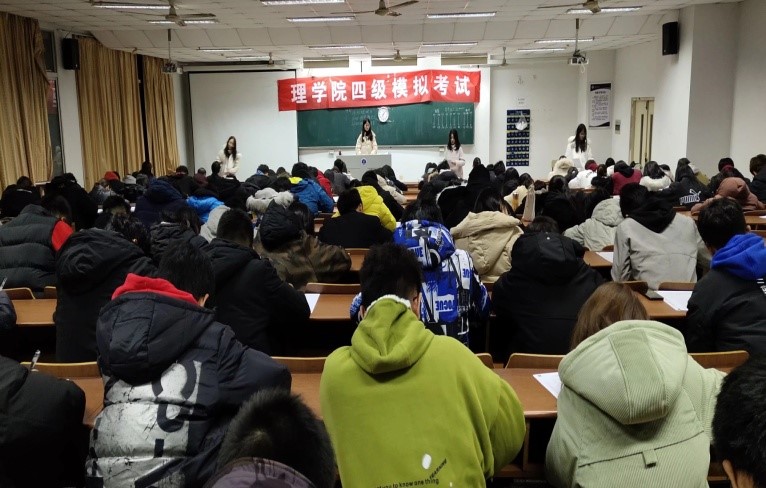 11月28日晚7点,由理学院学生会举办的四级模拟考试在通灌校区至善楼102、202举行。理学院学生会主席团及部长、副部担任本次模拟考监考员。大一新生除小语种同学外均参加了此次的考试。