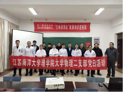 12月20日下14时30分,由“连云港市第一人民医院新东社区卫生服务中心内科支部消化小组”与“理学院大学物理党组二支部”共同举办“胃”雨绸缪“肠”治久安,“打响保胃战”健康知识讲座在定海楼会议室顺利举行。本次活动由理学院倪军副书记主持,连云港市第一人民医院李守英博士做“如何治疗胃食管反流病”主题报告。