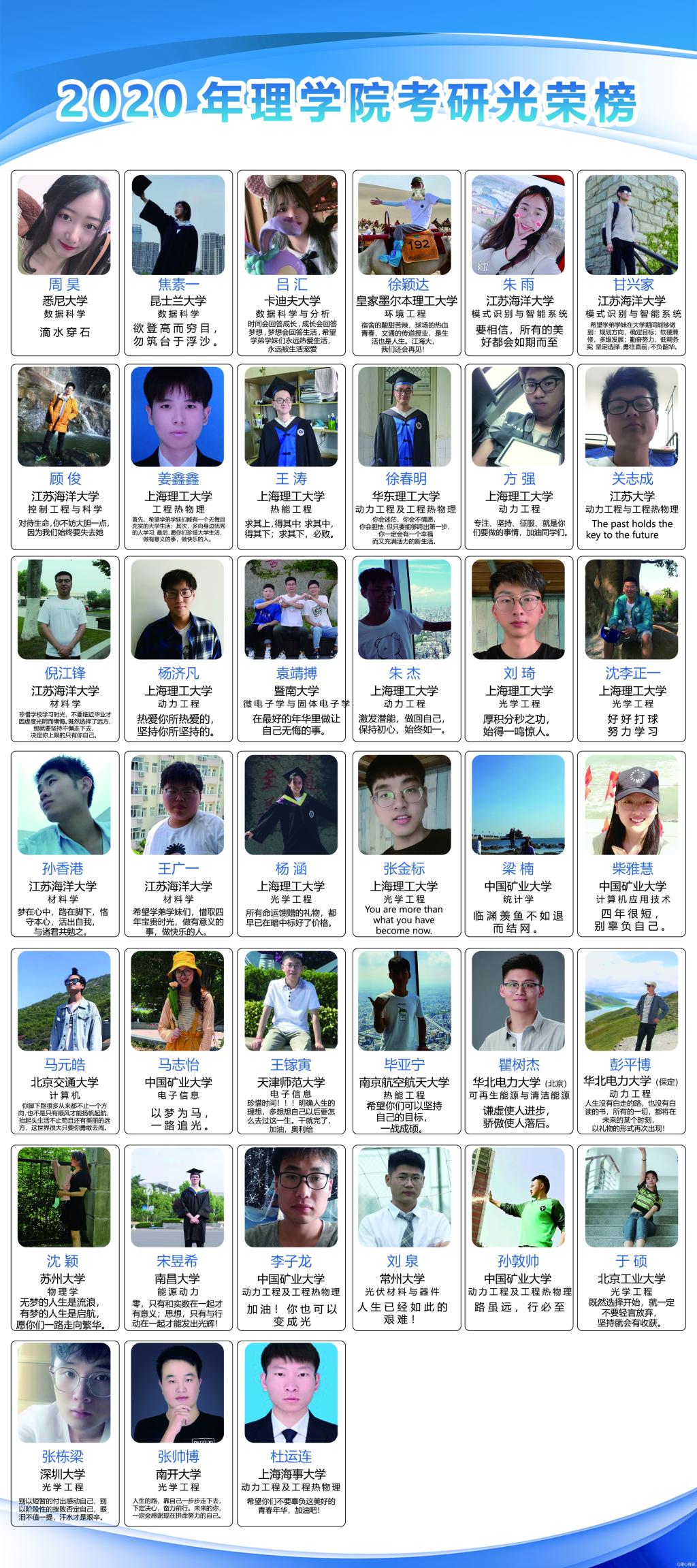 2020年全国硕士研究生招考已圆满结束,理学院考研录取率再创新高。235名毕业生中有39人被国内高校录取,录取率达16.6%。其中出国读研4人,占考研总人数的10.26%,考入双一流高校15人,占考研总人数的38.5%。