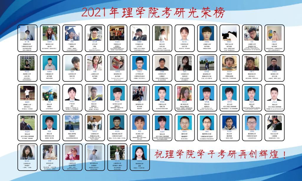 星光不问赶路人,天道酬勤佳音来!2021年考研已经落下帷幕,理学院考研录取率再创新高。截止5月29日,我院2017级本科毕业生考研录取人数达55人,考研录取率达20.6%,为理学院有史以来最好成绩!其中有多名同学被浙江大学、四川大学、哈尔滨工业大学、中国矿业大学等知名高校录取,考研录取院校质量进一步提高。近年来,我院考研录取率呈现上升趋势,这不仅是同学们朝干夕惕,刻苦努力的结果,也是学院不断提高教学质量、注重内涵建设的体现。我院历来重视学风建设和学生考研工作,采取多种措施动员、支持、鼓励学生考研。