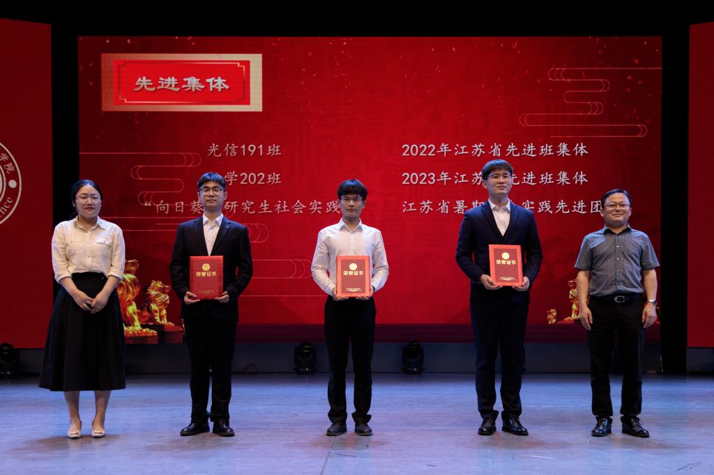 理学院不断追求高质量发展,积极培养德智体美劳全面发展的大学生。过去的两年中,捷报频传,涌现出许多的先进典型与优秀团体,入围江苏省大学生年度人物的江辉琪,获评江苏省先进班集体的光信191与数学202、运动场上篮球队、排球队不断突破自我,创造新的学院荣誉,为表彰先进,晚会邀请了校友企业为学院作出特殊贡献的个人与团体颁发了荣誉证书。